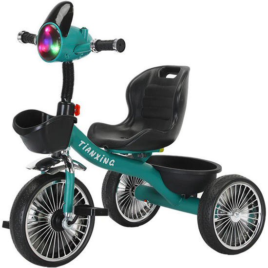 The children's tricycle bicycle 602GREEN is an outstanding and safe transportation toy for children aged 3 to 6 years. Its three-wheeled structure provides maximum stability and reduces the risk of tipping over, which is especially important during the stage of starting independent movement. The green color design creates an energetic and cheerful atmosphere. The front pedals help the child develop coordination and engage in physical activity. The bicycle is equipped with a soft seat, comfortable handlebars, and durable wheels, ensuring smooth movement both indoors and outdoors. It is an excellent choice for active and healthy fun.
