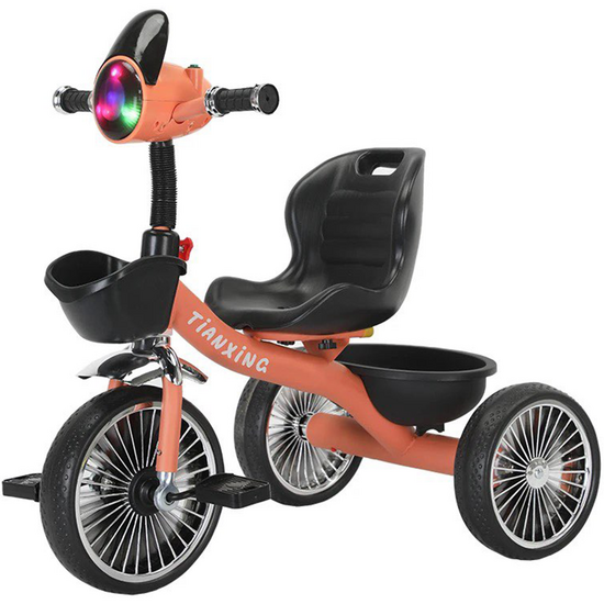 The children's three-wheeled bicycle 602PINK is the perfect choice for children aged 3 to 6 who are starting to move independently and learn to ride a bike. The pink design creates a cheerful and attractive visual, which is particularly appealing to little girls. The three-wheeled structure ensures stability and safety, while the front pedals help the child develop coordination and physical skills. The model is equipped with a soft seat, comfortable handles, and durable wheels, ensuring a comfortable ride both indoors and outdoors. The sturdy and lightweight frame provides long-lasting and enjoyable use.