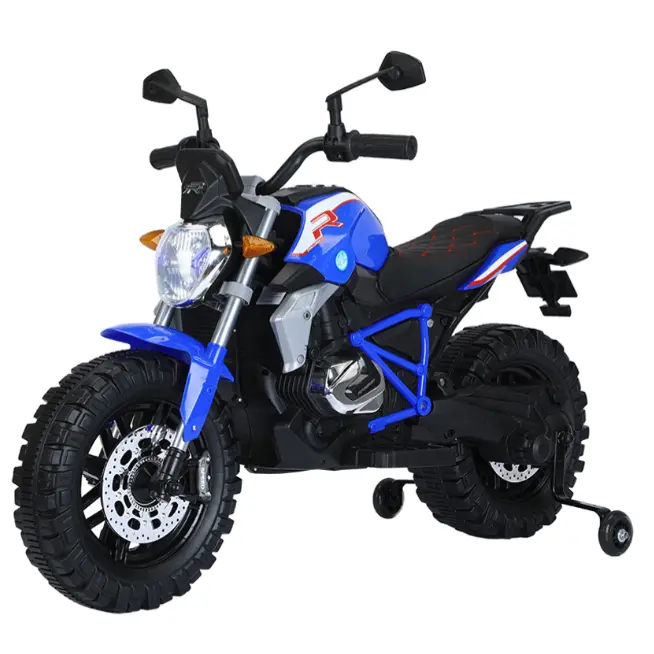 Children's electric motorcycle 608BLU with leather seat and rubber tires