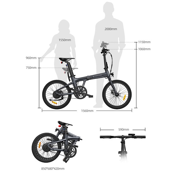 Electric Bicycle ADO Eco 16, 350W, Smart APP, Folding Electric Bike, 25KM/H, Grey