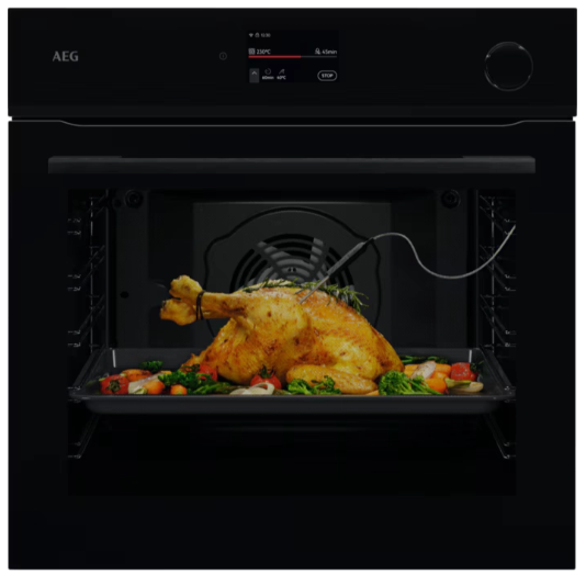 The AEG NBR7P731SB electric oven combines innovative technologies with elegant design. Thanks to the SteamBake function, it allows for perfect baking of pastries and bread in a humid environment, ensuring a soft interior and a crispy surface. The pyrolytic self-cleaning system greatly simplifies the cleaning of the oven, automatically removing grease and food residue through high temperatures. Multi-layer baking and the integrated temperature probe will help ensure that each dish is cooked to perfection. The combination of black and stainless steel in the design fits any kitchen interior, while the intuitive control panel and LCD screen provide comfortable and easy management.