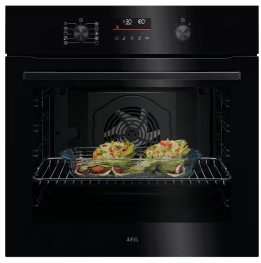 AEG NBU5P41SK is a premium built-in oven that combines modern design, energy efficiency, and innovative technologies. It is designed to make cooking easier, faster, and more comfortable. The oven is equipped with multifunctional programs that ensure perfect preparation of various dishes – whether it's roasted meat, delicate desserts, or bread. The SurroundCook system ensures even heat distribution, providing ideal results every time. The intuitive LED display and TouchControl panel allow you to easily control the temperature and time. Its durable and elegant black design seamlessly blends with any kitchen interior. The energy-efficient construction reduces electricity consumption, contributing to cost savings. AEG NBU5P41SK is the perfect choice for those who want professional results, reliability, and style in one device.