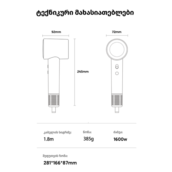 Hair dryer ALLX AXH-015P, 1600W, High Speed Hair Dryer, Negative Ionic, Turbo, Purple