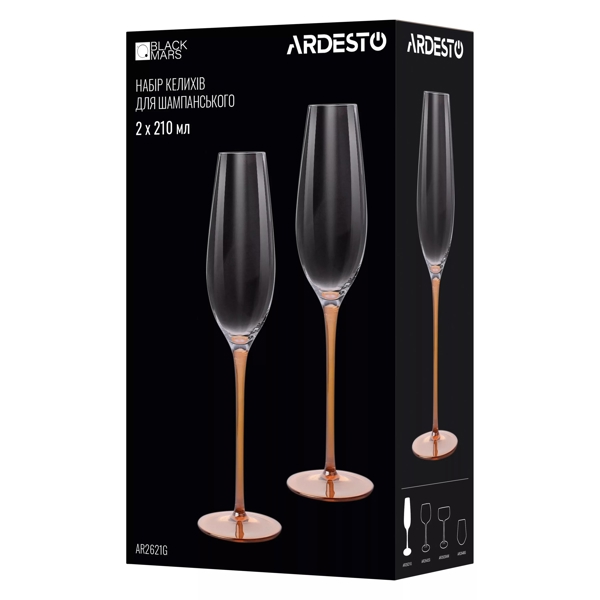 Ardesto AR2621G Black Mars Amber, 210ml, 2pcs, Champagne Glasses Set, Transparent/Golden