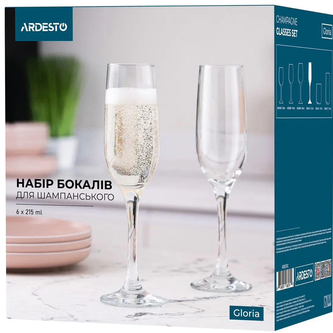 Champagne glasses Ardesto Champagne glasses set Gloria 6 pcs, 215 ml, glass