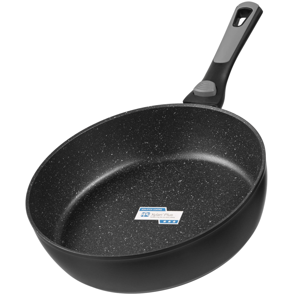 The Ardesto Gemini Bari deep frying pan with a diameter of 28 cm is ideal for preparing a variety of dishes. Made of high-quality aluminum, it provides fast and even heating, which reduces cooking time and energy consumption. The pan has a durable, non-stick coating that is safe for food health and easy to clean. The removable silicone handle makes the pan comfortable and multifunctional to use, making it compatible with the oven. The elegant black design blends perfectly with the style of a modern kitchen. The Ardesto Gemini Bari pan is a great choice for everyday cooking, combining comfort and quality.