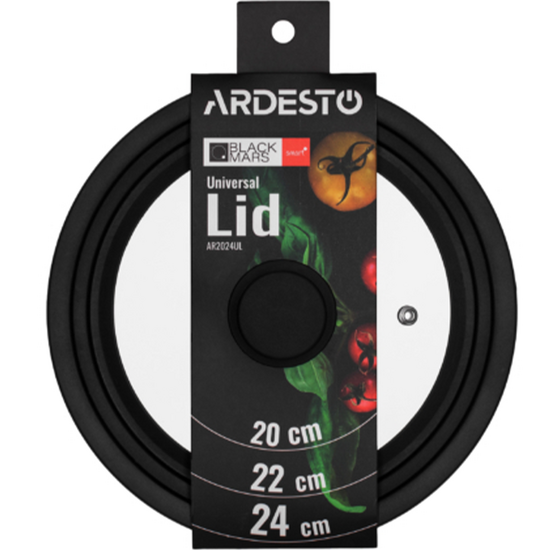 Glass lid Ardesto Universal lid Black Mars Smart 20/22/24 cm, glass, silicone