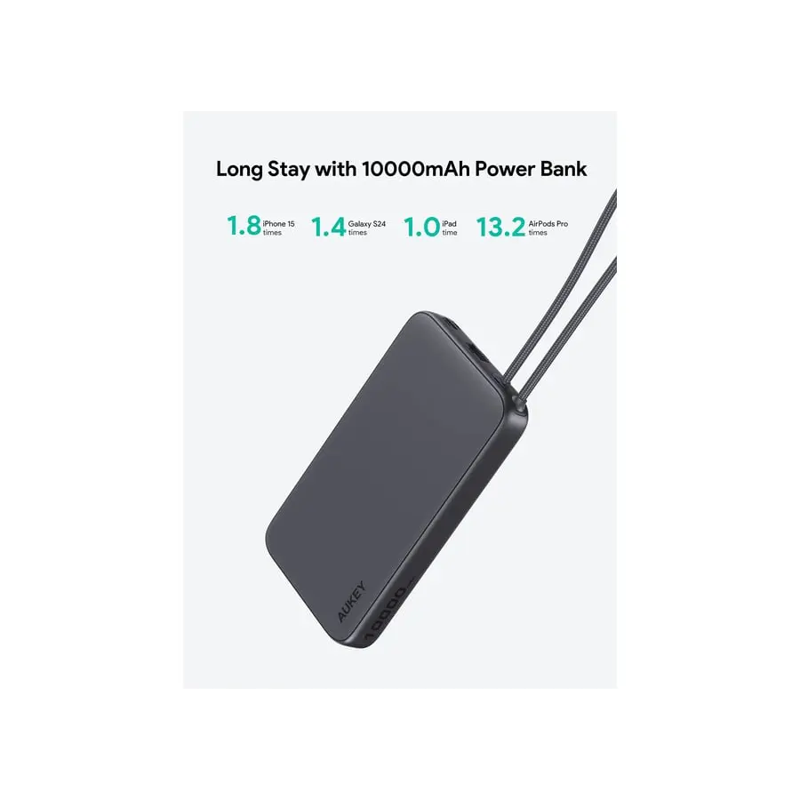 Portable charger Aukey PB-Y53 15W 10000mAh Spark Sling Lite Slim Power Bank with Built-in USB-C Cable - White