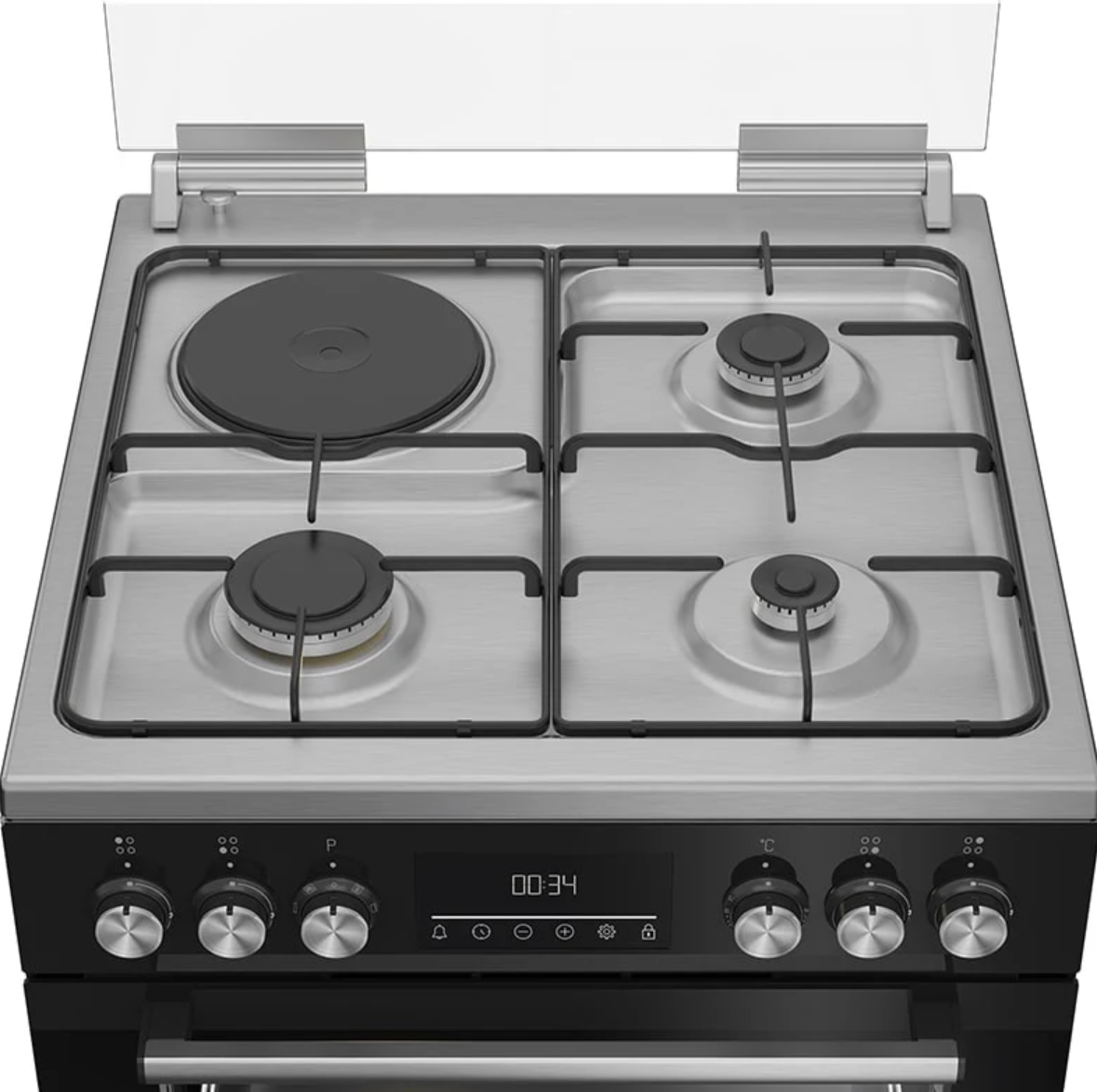 Beko FBE63331XCS is a gas stove with an electric oven featuring a modern design that ensures multifunctionality and high-quality cooking in everyday kitchens. The device is equipped with three gas burners and one electric burner, providing you with the flexibility to prepare various types of dishes. The electric oven offers multi-mode functions, including grill and convection modes. The transparent door and internal lighting simplify the cooking process. The stainless steel surface is durable and easy to clean, promoting both aesthetics and hygiene. It is an ideal choice for those looking for a reliable and functional gas stove.