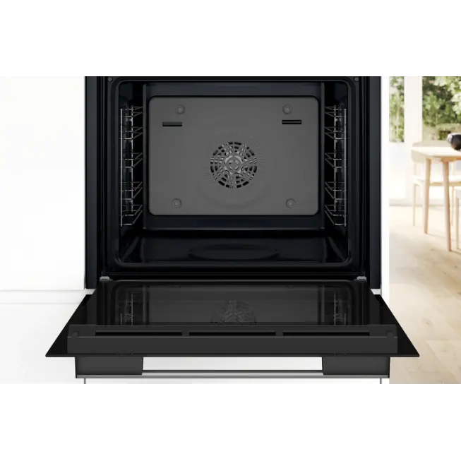 The built-in oven BOSCH HJA737BR0 stands out with its unique functionality and elegant design. Its 76-liter capacity is incredibly large for family and professional use. The oven offers 7 cooking modes, including conventional, grill, hot air, and pizza mode, which significantly increases usage versatility. It features EcoClean Direct and Hydrolytic self-cleaning programs, simplifying the cleaning process. The built-in halogen lighting ensures a detailed view of the interior space. The German Strix thermostat and safety glass guarantee full safety. The construction on the device's frame allows for instant and easy installation. High energy efficiency (A class), effective energy of 3,400 W, and a weight of 30.8 kg make this oven the perfect partner for modern kitchens.