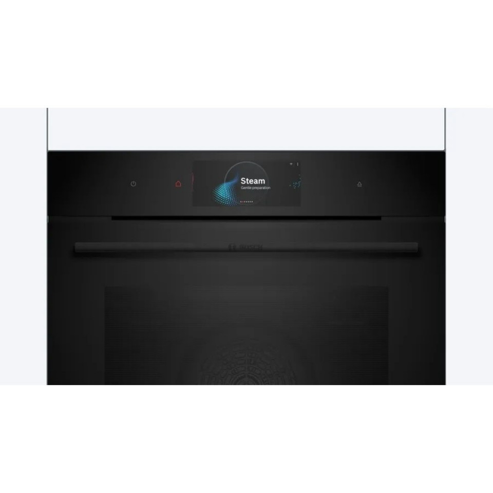 The Bosch HSG958DB1S built-in electric oven combines modern design, high-efficiency technology and extensive capabilities. The 71-liter capacity is ideal for preparing both everyday and festive dishes. The oven is equipped with the Steam Plus steam function, which preserves the juice and aroma of food. The rapid heating system and multi-mode baking ensure even results on all levels. Its innovative touchscreen panel and black glass design create an elegant visual and easily blend into any kitchen interior. Additional functions include automatic recipes, a timer and energy efficiency.