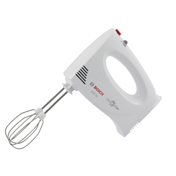 BOSCH MFQ3010 (CleverMixx) hand mixer is ideal for home use. It has a power of 300 W with highly protected modern features, ensuring reliable and sustainable operation. The device comes with 2 stainless steel whisks and 2 mixing spoons, necessary for various recipes. The mixer is equipped with 2 speeds and a turbo function, ensuring fast and even mixing. The beaters are easily interchangeable with just one button, enhancing cleaning simplicity. The device has a lightweight and quiet body, comfortable to hold, as well as a temporary type cable. BPA-free material ensures food safety. BOSCH MFQ3010 is a practical and affordable option, designed for both beginners and enthusiastic cooks looking for quality results.