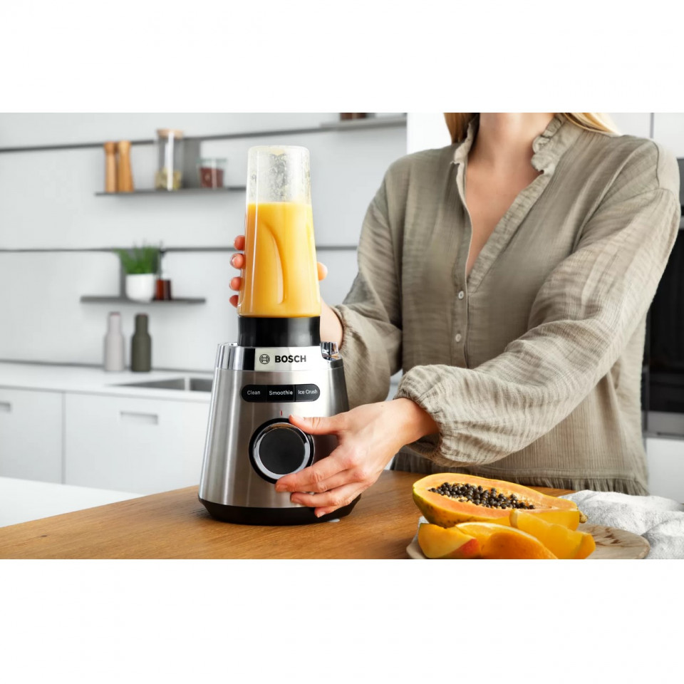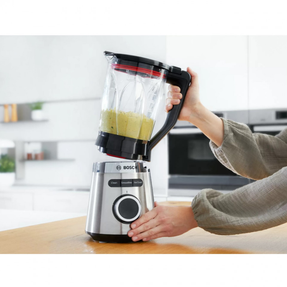 The BOSCH MMB6384M blender is a functional and high-quality kitchen appliance designed for your convenience. Its 1200-watt motor ensures fast and efficient processing of products, while the 1.5-liter solid glass bowl is ideal for working with both hot and cold ingredients. Stainless steel blades ensure precise and uniform mixing, which makes preparing smoothies, sauces and soups easy and enjoyable. The blender has different speed modes and a pulse function, which makes its use multifunctional. The compact design and durable materials make the BOSCH MMB6384M an ideal choice for any kitchen.