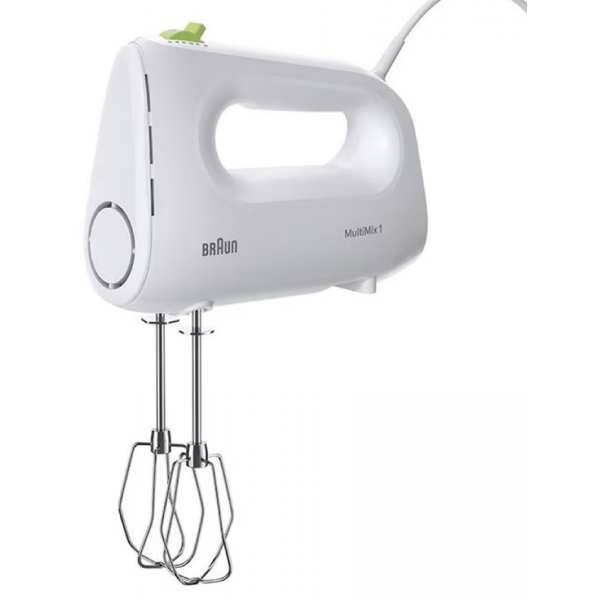 The Braun HM1100WH MultiMix 1 hand mixer is ideal for everyday culinary tasks. Its 450-watt motor ensures fast and efficient mixing, while the 4-speed settings and turbo function allow you to achieve the desired consistency. FastMix technology simplifies the mixing of ingredients, which is particularly helpful for making dough, cream, and puree. With the EasyClick system, you can easily change accessories. The stainless steel whisks and dough hooks are dishwasher safe. Its lightweight and ergonomic design provides comfortable use. The 1.25-meter cord and compact dimensions (9 x 16.4 x 22.3 cm) make it a practical and convenient device for any kitchen.