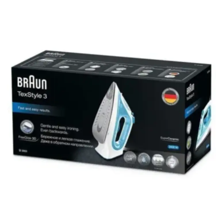 The Braun SI3053BL iron is designed for fast, comfortable, and efficient ironing. The powerful steam output ensures deep penetration into the fabric, easily removing even stubborn wrinkles. With high performance, the device is intended for daily use and features a lightweight construction for easy handling. Its elegant design and durable plate allow it to work safely on all types of fabrics with even gliding. The quick heating system reduces waiting time, and the drip protection prevents water leakage during ironing. The Braun SI3053BL is an excellent choice for those seeking a quality, modern, and reliable iron for everyday use.
