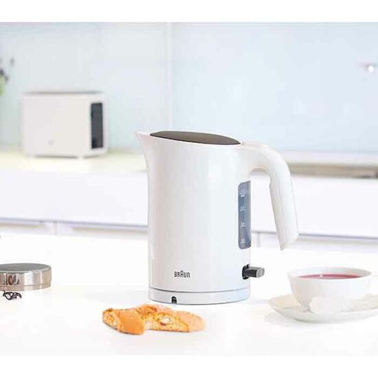 The BRAUN WK3110WH electric kettle is an efficient and modern device that combines style and functionality. Its 2200 watt power ensures fast boiling of water, and its 1.7 liter capacity is ideal for both everyday use and serving guests. It is equipped with a two-sided water level indicator, an automatic shut-off mechanism and a removable filter that reduces the formation of scale. The 360-degree base and ergonomic design ensure easy and safe use for both hands. The elegant white color blends perfectly with the interior of a modern kitchen. The BRAUN WK3110WH is a reliable and stylish choice for comfortable everyday use.