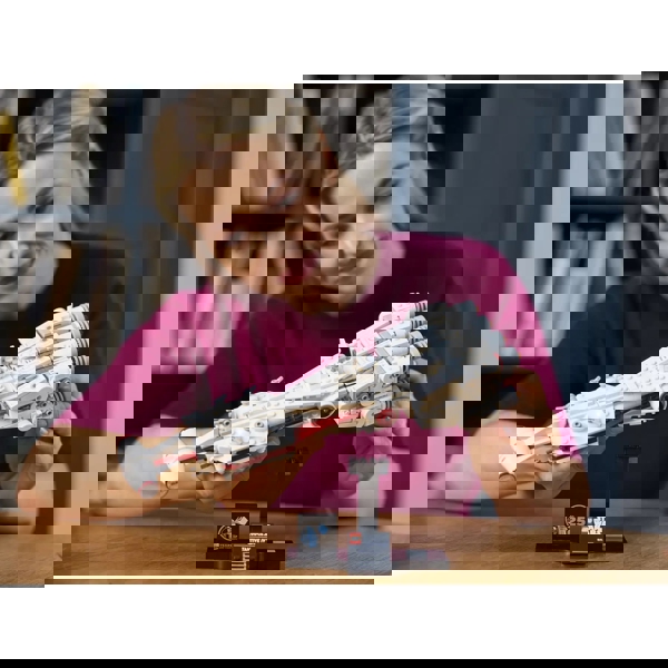 The LEGO Tantive IV is an impressive model designed for Star Wars fans. This iconic ship, known as Princess Leia's diplomatic transport, closely replicates the design of the real model. The set includes moving parts such as onboard weapons, a modified cockpit and docking details, which make the game even more realistic. The Tantive IV is an ideal choice for both play and collectors who want to enrich their LEGO Star Wars collection. Create and experience one of the most famous scenes in Star Wars.