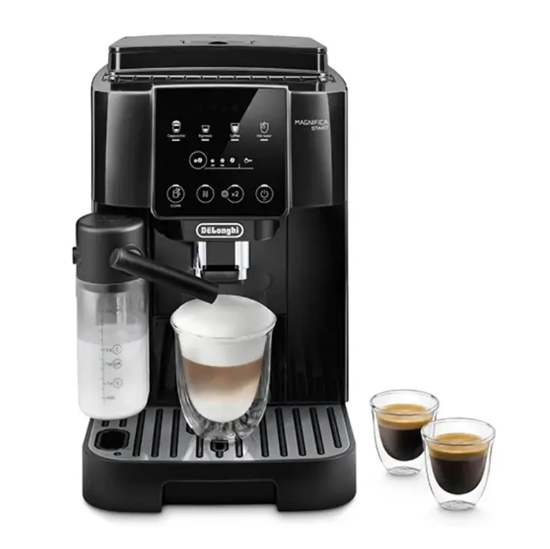 DeLonghi ECAM220.60.B Magnifica Start is a fully automatic coffee machine that offers barista-level drinks at home. Its LatteCrema Hot technology ensures the preparation of rich and creamy milk foam, which is ideal for cappuccino and latte. The machine has 4 simultaneous recipes: espresso, coffee, cappuccino and hot water, which allows you to easily prepare the desired drink. A 250-gram bean container and a 1.8-liter water tank ensure long-lasting operation. 15 bar pressure and a 13-step steel conical grinder ensure maximum coffee aroma. The soft-touch panel and black-and-white icons simplify the operation of the machine. The compact design (240x440x350 mm) and 8.8 kg weight are ideal for any kitchen. The parts of the machine are easily removable and can be washed in the dishwasher, which simplifies maintenance.