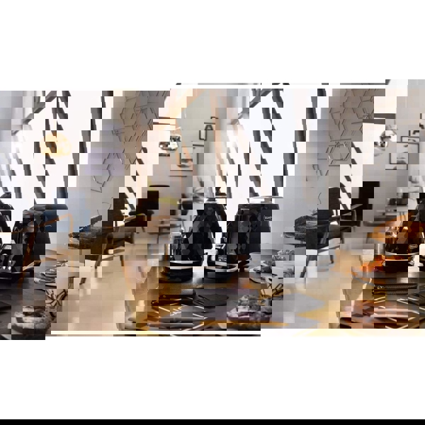 The DELONGHI KBJ2001.BK electric kettle is an elegant and powerful device that combines style and functionality. Its 2000 watt power ensures rapid boiling of water, allowing you to prepare tea, coffee or other hot drinks easily and quickly. The 1.7 liter capacity is ideal for both family and office use. The kettle is equipped with an anti-clog filter that maintains the purity of the water and improves the taste of the drink. The 360-degree rotating base increases the comfort of use, and the automatic shut-off function ensures safety. Its modern and sophisticated black design creates style and blends into any kitchen interior. DELONGHI KBJ2001.BK - style, functionality and safety in one device.