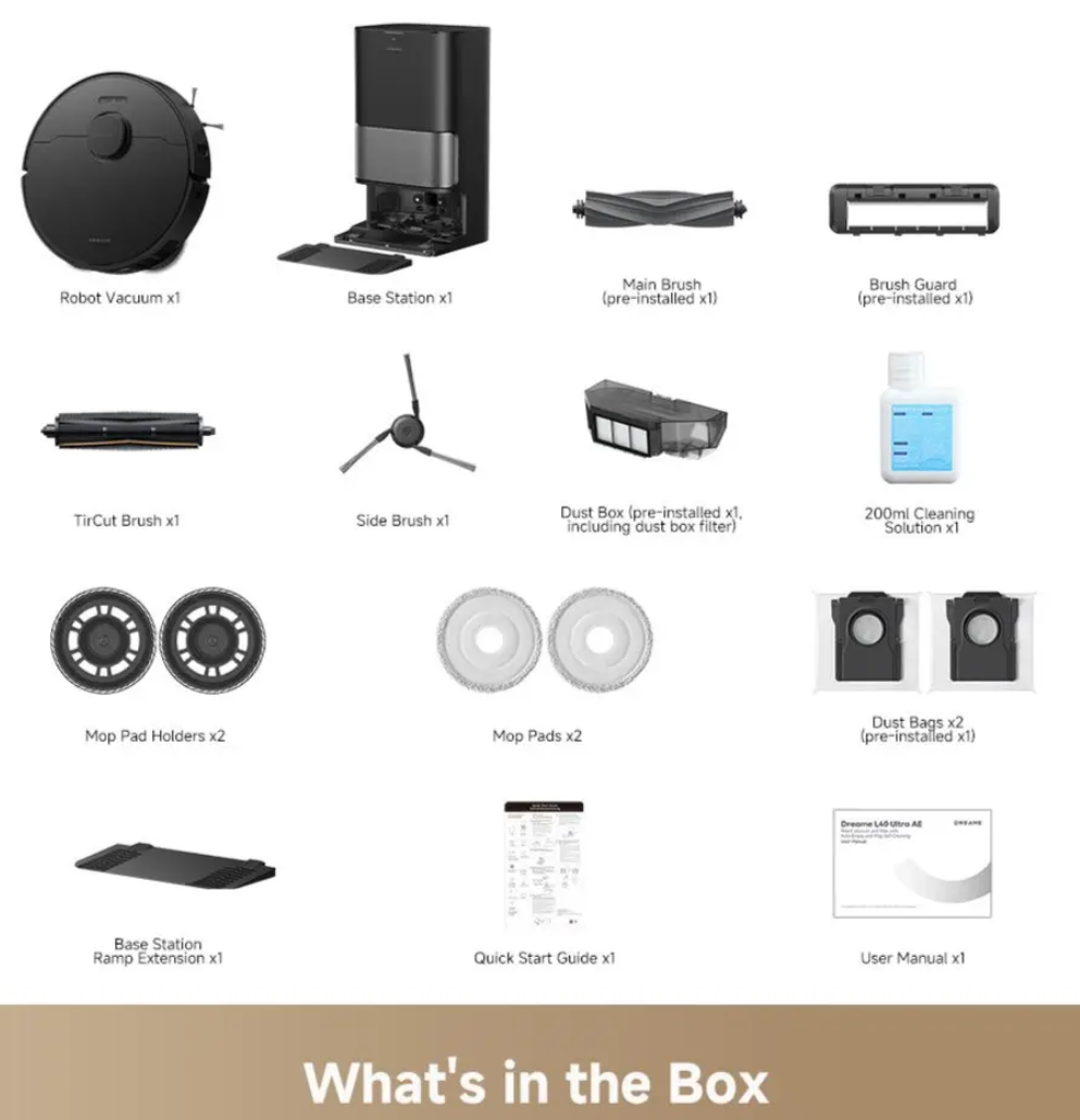 - Mop Removal: Automatic removal of mop pads at the base station to avoid moisture or dirt when vacuuming carpets.