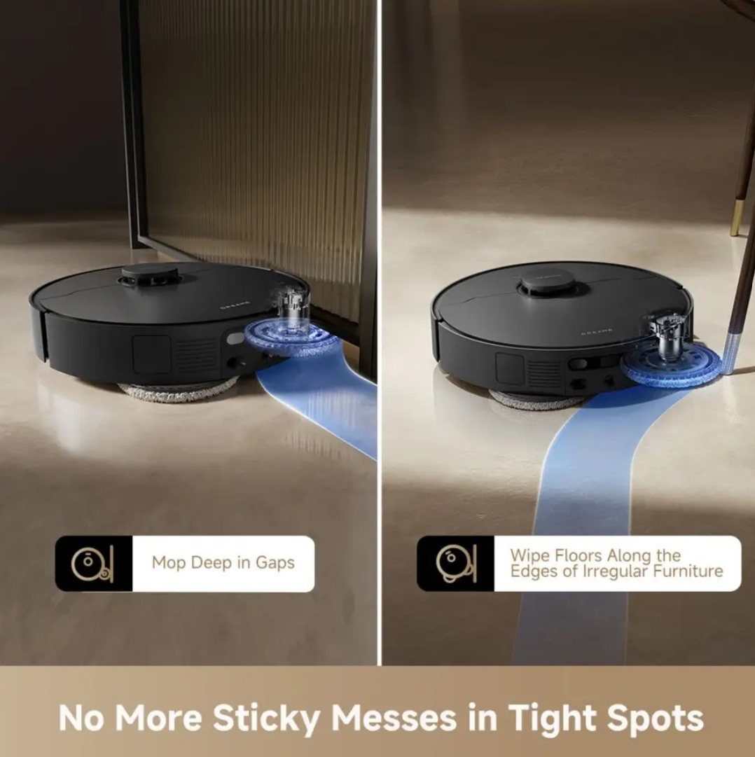 - MopExtend™ RoboSwing Technology: provides flexible movement in corners and under low furniture with the mop extending.