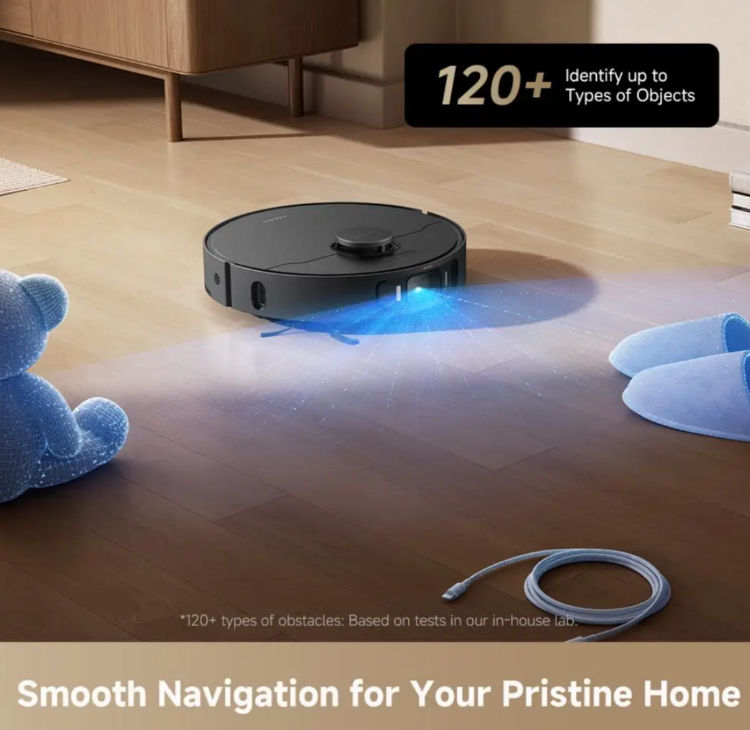 - Navigation: LDS laser navigation (LiDAR) + AI RGB camera + 3D structured light + LED lighting - ensures precise mapping, obstacle recognition (identifies over 100 objects), and night cleaning.
