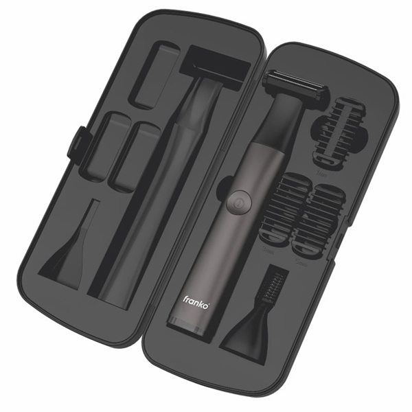 The FRANKO FGK-9032 trimmer is a modern and functional device designed for precise and comfortable hair and beard care. Its adjustable settings allow you to adjust the desired length, ensuring an individual style. The device is designed for dry use and is equipped with hypoallergenic blades, which reduces the risk of skin irritation. The elegant design of the black color and ergonomic shape provide a comfortable grip and ease of use. The FRANKO FGK-9032 is a reliable and effective choice for those who value quality and comfort in everyday care.