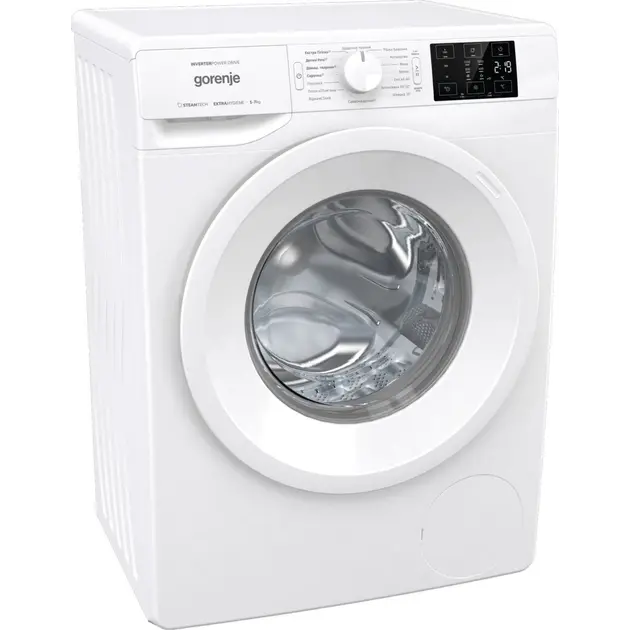 The GORENJE WNGPI72SBS/D washing machine combines high efficiency, modern technologies, and energy efficiency in a compact design. The 7 kg capacity is ideal for family use, while the Inverter PowerDrive motor ensures durable, quiet, and economical operation. The SteamTech steam function reduces wrinkles and eliminates bacteria, leaving clothes soft and clean. The SensorIQ system automatically adjusts water and energy consumption based on each load, while the innovative WaveActive drum design protects the fabric structure. The quick wash program is perfect for daily use, and the intuitive LED display simplifies control. The GORENJE WNGPI72SBS/D is a modern, energy-efficient, and reliable washing machine for your home.