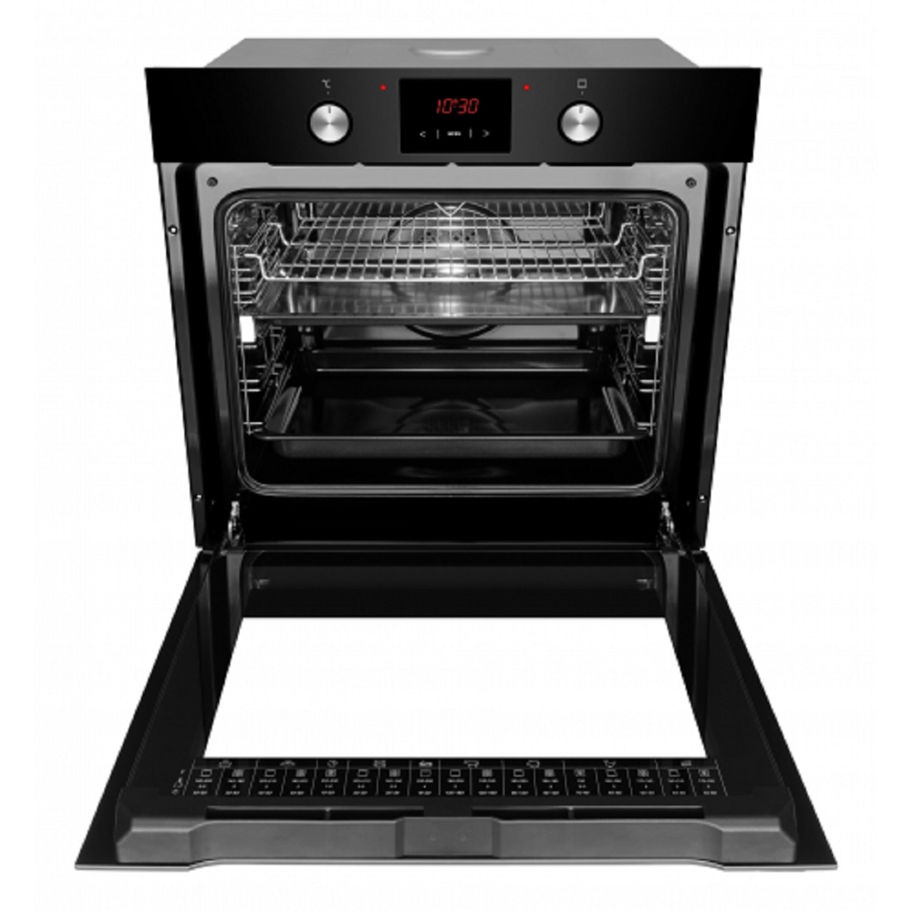 Hansa BOES684001 is a built-in electric oven distinguished by its elegant black design and practical features. The 77-liter capacity provides ample space for both everyday and festive meal preparation. The convection system evenly distributes hot air, promoting perfect and even baking. The intuitive control panel and digital display allow you to easily adjust the temperature and time. Class A energy efficiency reduces electricity consumption, while the easy-to-clean interior surface ensures convenient maintenance. Durable materials and modern design make it a reliable and aesthetic choice.