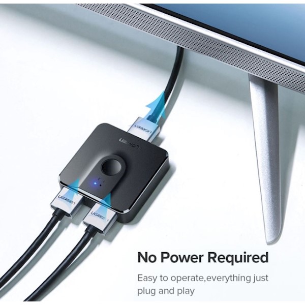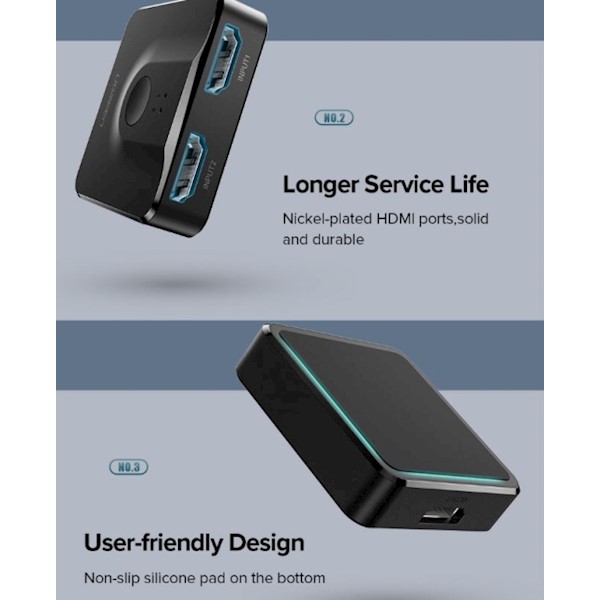 HDMI Switch UGREEN CM217 (50966) 2 In 1 Out HDMI 1.4 Switcher 4Kx2K @ 30Hz