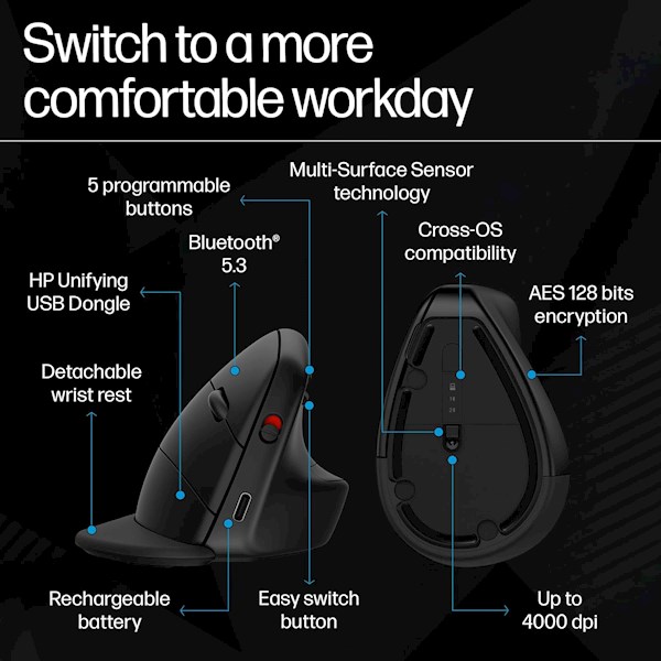 Mouse HP 920 Ergo VRTCL Wireless Mouse (6H1A4AA)