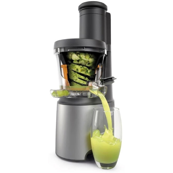 The KENWOOD JMP85.000SI juicer is a modern and functional device that allows you to obtain the purest and healthiest juice from fruits and vegetables. The innovative slow juicing technology maintains vitamins and minerals, ensures natural flavor, and maximizes benefits. The device features a wide feeding chute, reducing the need for pre-cutting ingredients and simplifying the process. Large capacity containers allow you to prepare juice for the whole family at once. The JMP85.000SI has an automatic self-cleaning function and removable parts that are easily washable in a dishwasher. The elegant silver design perfectly blends with modern kitchens. The KENWOOD JMP85.000SI is the ideal choice for those who value health, quality, and comfort.