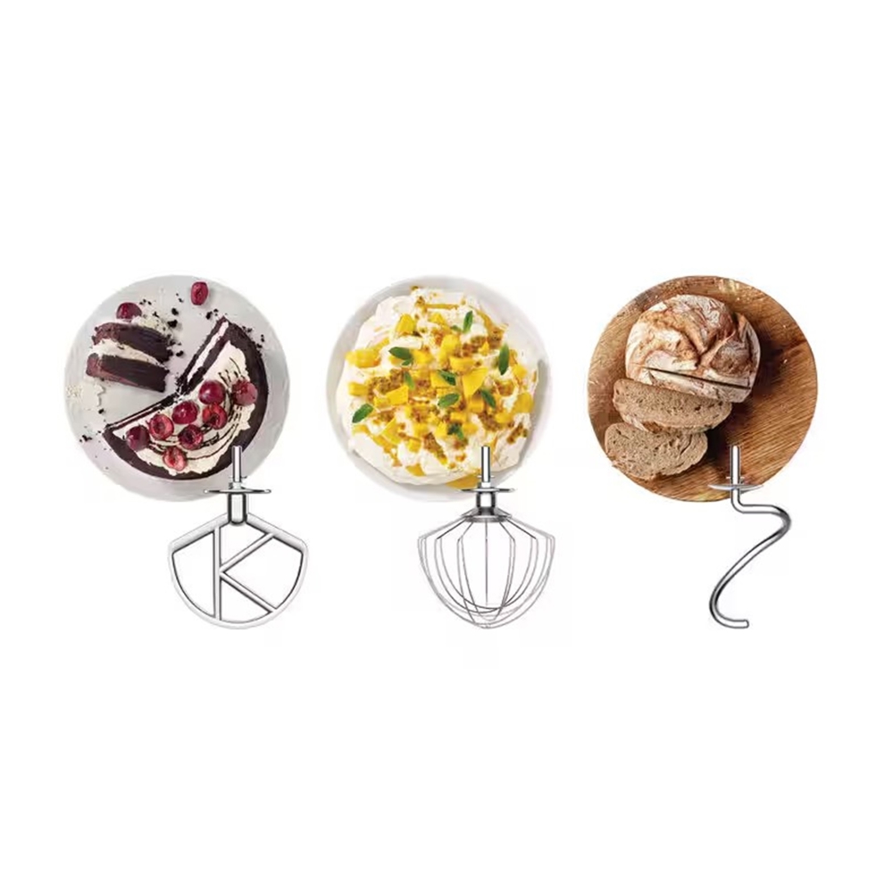 The KENWOOD KMX760ABC is a premium kitchen mixer that combines style and functionality. Its 1000-watt motor provides powerful and stable performance, which is ideal for kneading dough, preparing creams and other culinary tasks. The 5-liter stainless steel bowl allows you to prepare large quantities of mass at once. The device is equipped with 6 speed modes and an additional "fold" function, which ensures gentle mixing of ingredients. The set includes a K-shaped mixer, dough hook and balloon whisk, which provides a variety of uses. The clean design and black chrome color will add elegance to your kitchen.