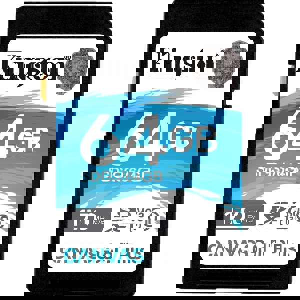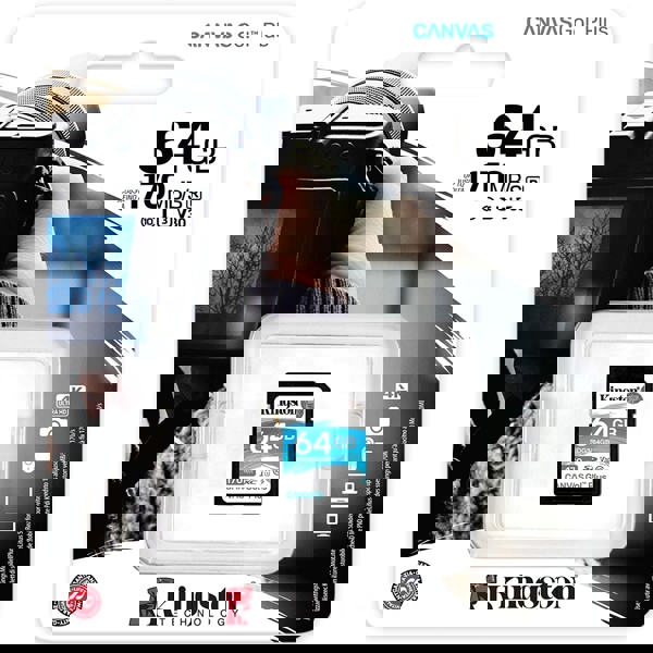 Kingston SDG3/64GB Canvas Go Plus is a high-speed SDXC memory card that is ideal for 4K video, high-resolution photos and fast data transfers. The 64GB capacity provides enough space for professional and hobbyist use. UHS-I U3 class support provides read speeds of up to 170MB/s and write speeds of up to 70MB/s, which simplifies work with cameras, drones and other devices. The durable construction protects the card from water, shock and temperature effects, ensuring reliable operation in all conditions.