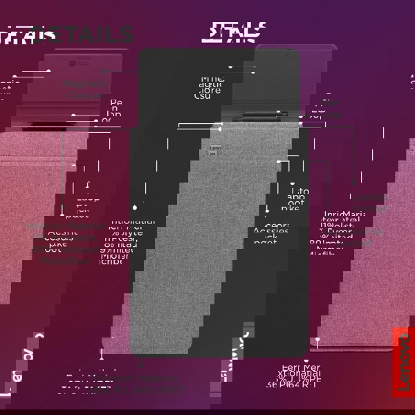 The Lenovo GX41K68624 Yoga 14.5-inch bag in Grey color represents an elegant and practical solution for the safe and stylish storage of Lenovo Yoga laptops. The material is made of recycled PET with a soft polyurethane exterior, combining continuous protection and eco-friendliness. The bag features a magnetic closure for quick and secure use and a compartment for storing additional accessories (reading devices, charger, pen). With a lightweight (248 g), slim profile and minimalist design, the bag is practical for daily and business travel. It accommodates 14.5-inch screens for both Lenovo and other brand models, providing effective protection and a clean aesthetic all in one product. This bag combines protection and comfortable transport for your laptop in a modern style.