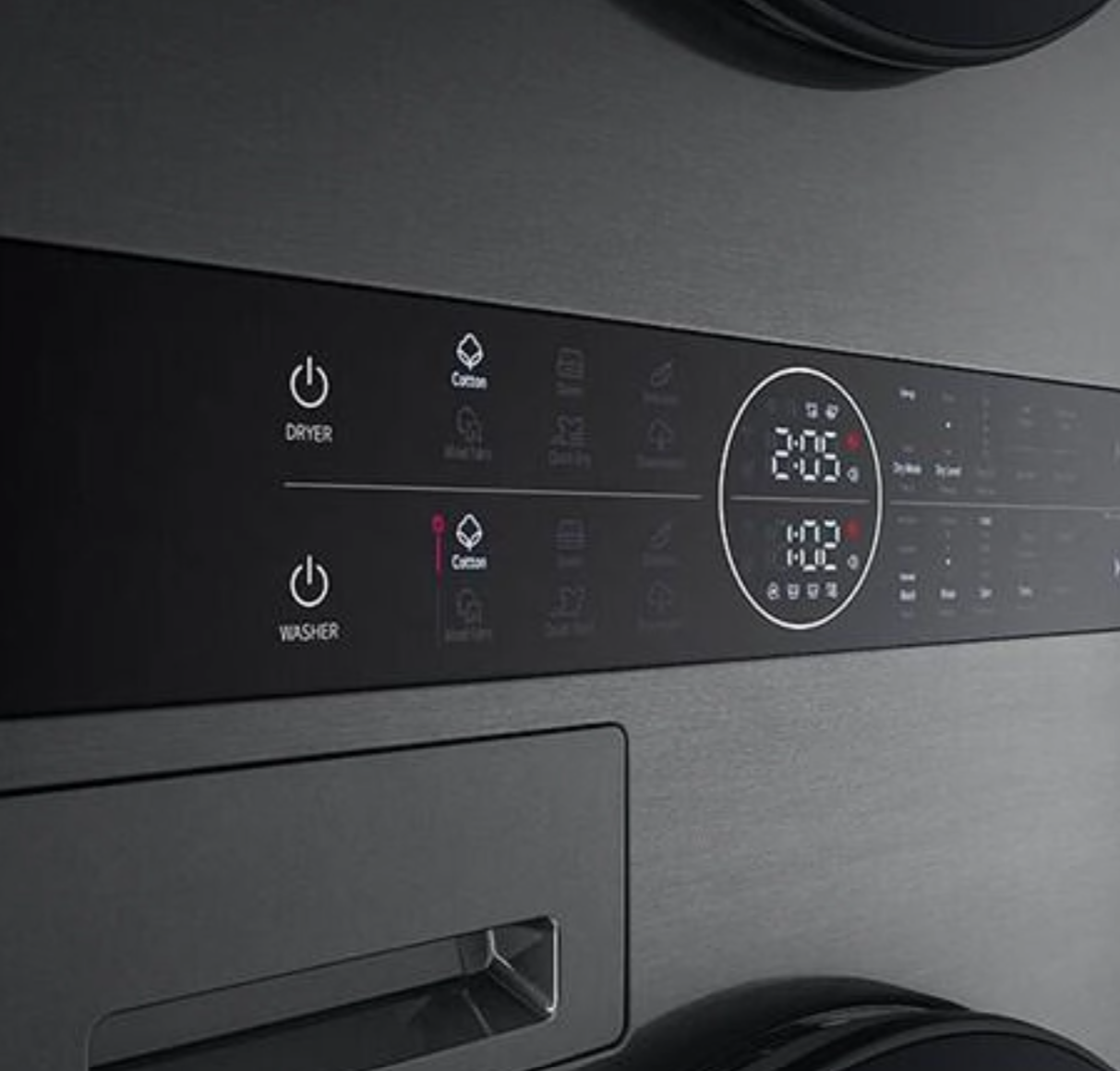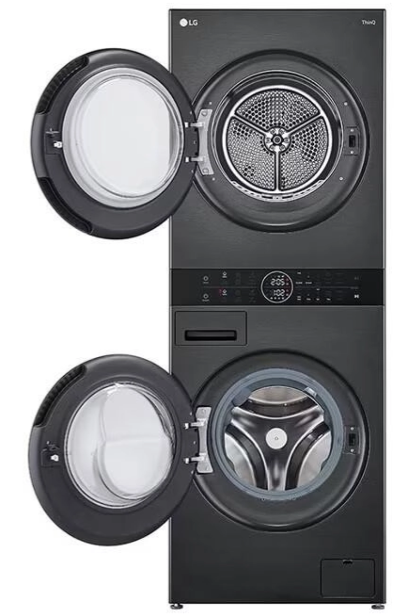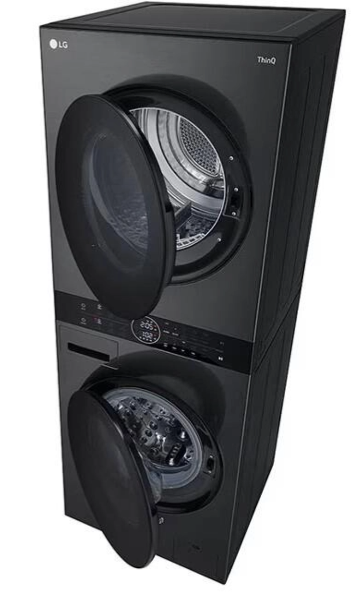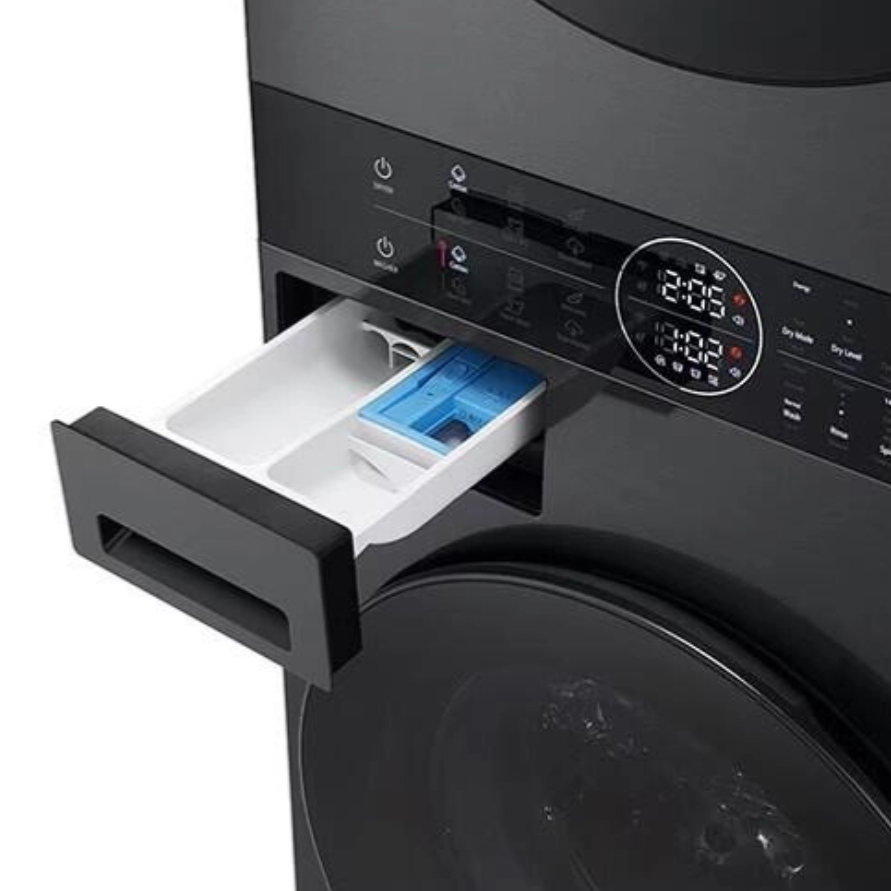 LG W4W8BVPKZHM.APBPALY is an innovative WashTower™ that combines 12 kg washing and 10 kg drying functions in one compact device. The control elements located on the central panel allow the device to operate easily and conveniently. AI DD technology accurately assesses fabric type and load to provide optimal washing and drying modes. TurboWash 360 function ensures a fast and high-quality washing process, while Dual Inverter Heat Pump technology performs the drying operation with increased energy efficiency. The auto condenser cleaning simplifies maintenance and maintains the performance of the device. The high-quality black finish and refined design are fully suitable for any interior. Wi-Fi connection and remote control via the SmartThinQ app are supported.