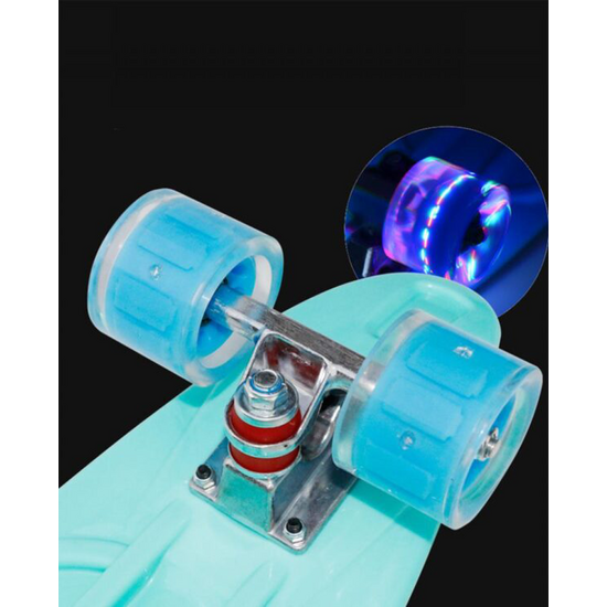 The skateboard M350YST-RIDE is an excellent choice for those who want a combination of style and functionality. The durable platform is designed for both beginners and experienced skaters. The skateboard's uniqueness is enhanced by the glowing wheels, which create an effective visual while gliding at night and increase visibility. The handle simplifies carrying and storing it, which is especially convenient for kids. The RIDE design is created for followers of modern and dynamic styles. Ideal for gliding in the park, square, or street, it ensures stable, smooth, and safe movement.