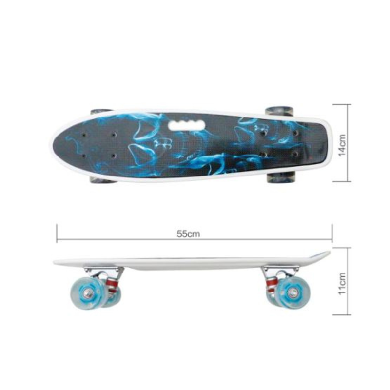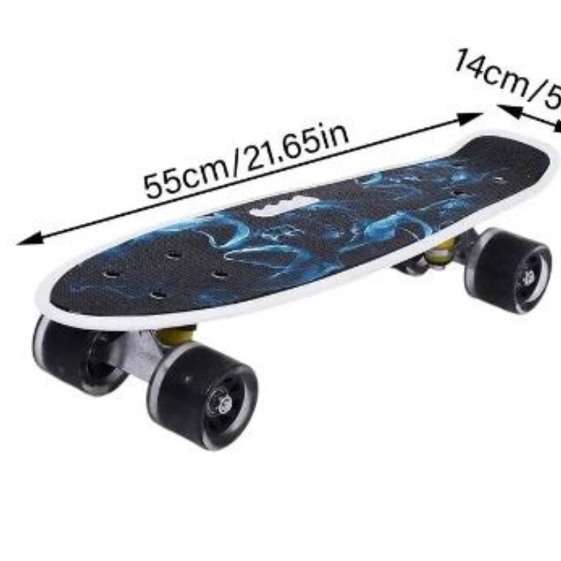 The skateboard M350YST-SKALETON2 is designed for those who want a comfortable and stylish skating experience. Its distinctive SKALETON2 design and detailed graphics are visually impressive and popular among children and teenagers. The skateboard is equipped with glowing wheels, making nighttime skating safe and spectacular. The handle simplifies carrying and storage, facilitating easy transportation. The platform is made of durable materials, ensuring stability and long-lasting use. Suitable for both beginners and experienced skaters for daily activities outdoors.