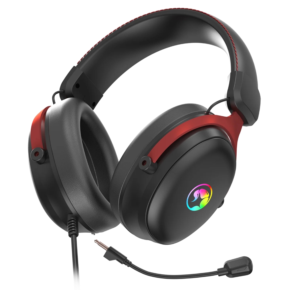 MARVO HG9076 Tactic X – a sober, cracked, RGB illuminated gaming headset, equipped with durable 53 mm diameter speakers. With 7.1 surround sound support, it offers precise spatial audio experience, particularly effective in battle games. You can wear it during long gaming nights as the rounded seamless headband and soft cushions provide ten hours of comfort. The built-in, hanging microphone offers reliable voice communication, while the USB or Type-C connector easily connects the device.