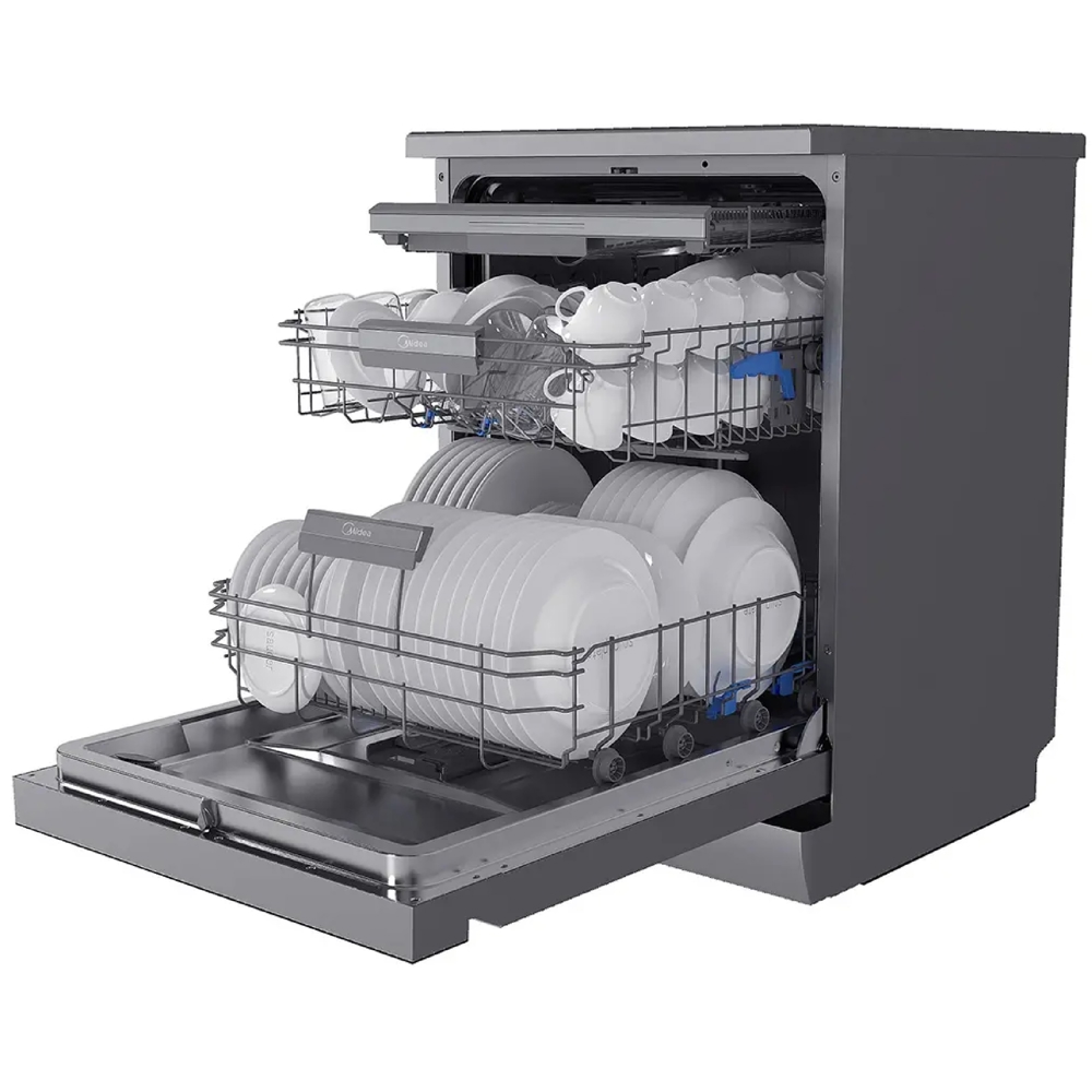 The Midea MFD60S160Si dishwasher is a modern and functional device that helps simplify your daily routine. Its capacity for 12-14 place settings allows for washing a large amount of dishes at once, making it ideal for families or frequent guests. The device is equipped with a variety of washing programs, including quick and energy-efficient modes, allowing you to choose optimal settings. The inverter motor ensures low noise levels and energy savings, while the Aqua Stop system protects against leaks and increases safety. Its modern design and stainless steel surface easily blend with any interior, while the durable construction ensures long-lasting use. The Midea MFD60S160Si is a practical and reliable choice for those seeking cleanliness, comfort, and energy efficiency in one device.