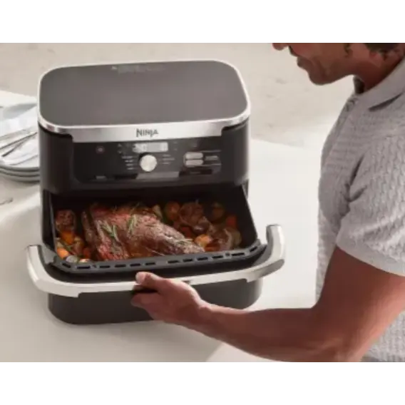 The Ninja AF500EU Black air fryer is a multifunctional kitchen device that helps you prepare meals faster, healthier, and more comfortably. Its innovative DualZone technology allows you to cook two different dishes simultaneously in different modes and temperatures, significantly saving time. The spacious capacity and diverse programs let you prepare crispy fries as well as juicy steak or desserts with minimal oil usage. Hot air circulation ensures even cooking and a crispy texture. The elegant black design gives it a modern look and perfectly blends with any kitchen interior. The Ninja AF500EU stands out for its simplicity, energy efficiency, and multifunctionality, making it an indispensable choice for those who value healthy eating and comfort.