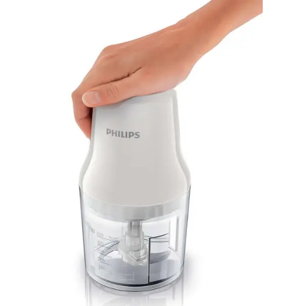 The PHILIPS HR1393/00 chopper is a powerful and practical device that helps you chop ingredients quickly and easily. Its 450-watt motor and stainless steel blades ensure precise and even results—whether it's vegetables, meat, fruit, or herbs. The transparent container allows you to monitor the process in real-time, while the simple one-button control system ensures comfortable and quick usage. The compact design does not take up much space in the kitchen, and the removable parts are easy to clean and safe for the dishwasher. The PHILIPS HR1393/00 combines durability, efficiency, and elegant style, making it an ideal assistant in the daily cooking process.