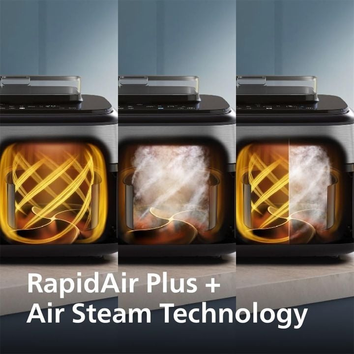 The PHILIPS NA555/09 air grill is a modern kitchen appliance that allows you to prepare various dishes quickly and healthily with minimal oil usage. The innovative Rapid Air technology ensures even circulation of hot air, resulting in food with a crispy surface and tender inside. The device has a large capacity basket, ideal for preparing meals for the whole family or guests at once. The intuitive control panel, various automatic programs, and temperature regulation options simplify everyday use. The PHILIPS NA555/09 is easy to clean, its removable parts are dishwasher safe, saving you time and effort. Its compact and elegant design perfectly fits any kitchen, while energy-efficient operation saves your budget.