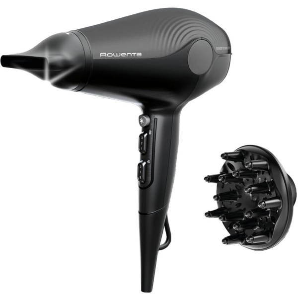 The ROWENTA CV6430F0 hair dryer is a powerful and modern device that provides fast and efficient hair drying. Its 2100 watt power and high-speed motor ensure that hair dries quickly and evenly. Advanced Care technology protects hair from overheating and maintains shine. The ionization function reduces static and gives hair a velvety shine. Multi-speed and multi-temperature control allow you to select the optimal settings for any hair type. The set includes a concentrator and diffuser, which allows you to create different styles and volume. Its elegant design and lightweight construction create a comfortable and stylish experience. ROWENTA CV6430F0 - a powerful, comfortable and efficient hair dryer.