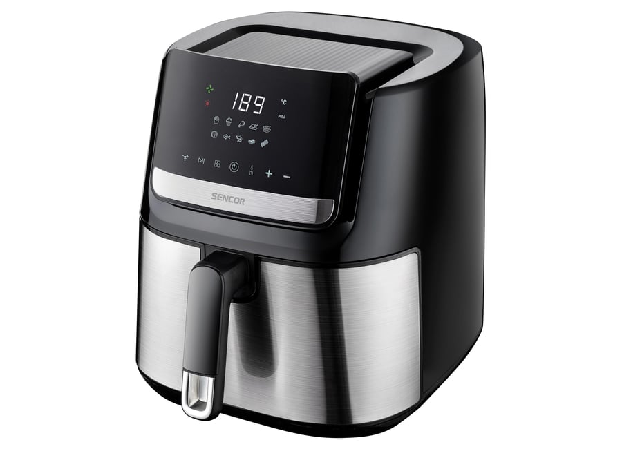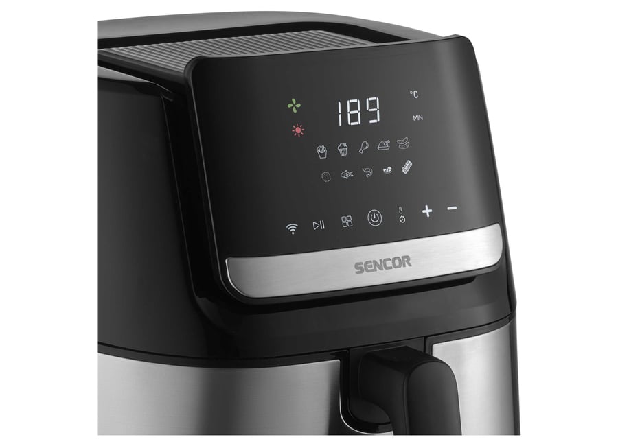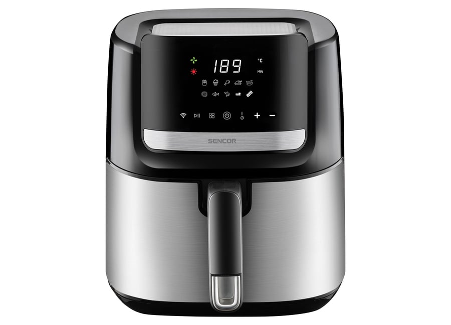 Sencor SFR 6600SS is a modern aerogrill that allows you to prepare your favorite dishes with minimal or no fuss, ensuring healthier meals. Its 6.5 liter capacity and 1600 watts of power ensure fast and even cooking of food. The LED display and touch control panel make it easy to adjust the temperature (from 80°C to 200°C) and time (up to 60 minutes). The aerogrill is ready to use in just 3 minutes and has an automatic shut-off function for safety. The removable non-stick coated basket makes cleaning easy. Cool to Touch technology ensures a safe temperature of the outer surface during use.