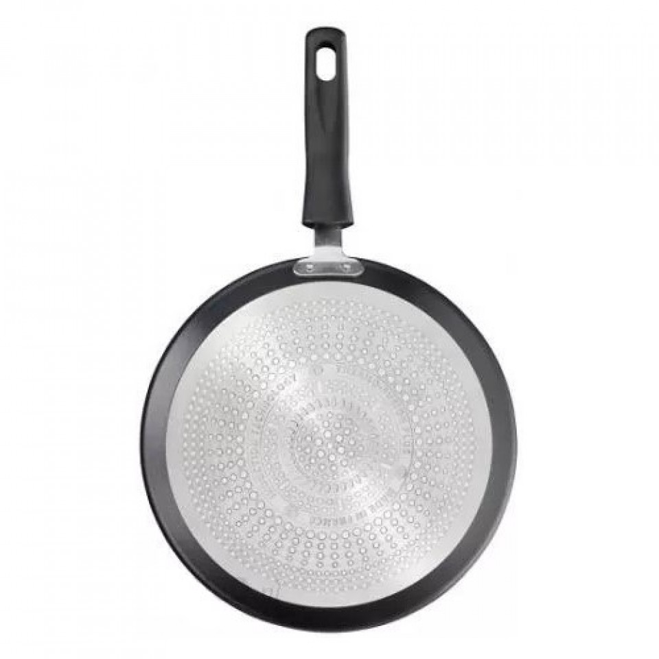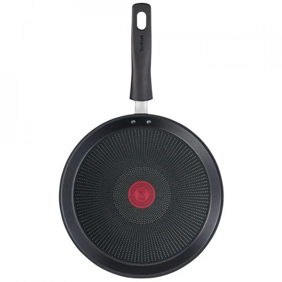 The TEFAL G2683872 Ultimate Pancake Pan combines innovative technology and durable materials that ensure long-lasting and efficient use. The pan with a diameter of 25 cm is equipped with a TITANIUM 3X non-stick coating, which is reinforced with titanium particles and provides three times greater durability compared to standard coatings. THERMO-FUSION™+ technology ensures fast and even heating, which gives ideal results when cooking. THERMO-SIGNAL™ indicator lets you know when the pan has reached the optimum temperature, ensuring perfect cooking. The pan is compatible with all types of cookers, including induction cookers. Its ergonomic design and high-quality materials ensure comfortable and safe use in the everyday kitchen.