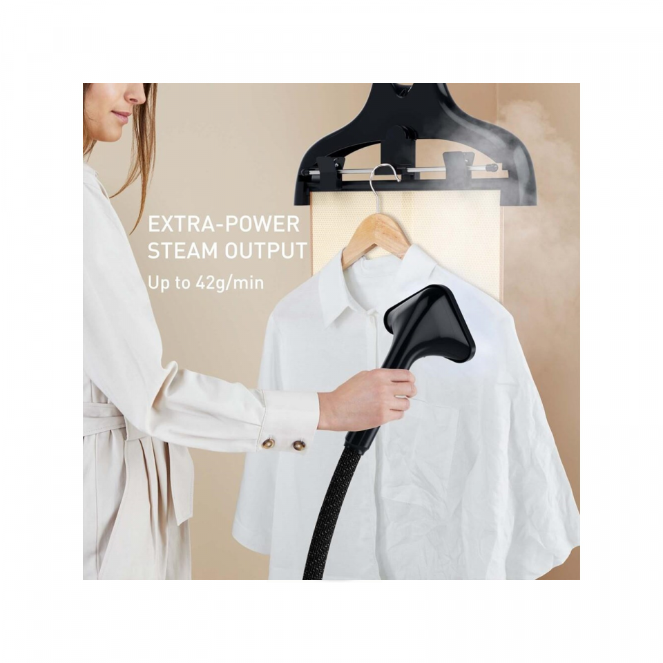 The TEFAL IT3480E1 is a vertical steam iron designed for fast and efficient ironing of clothes. Its 2000 watts of power provides a continuous steam output of 42 grams/minute, effectively removing wrinkles on various types of fabrics. The 0.15 liter water tank ensures long-lasting performance, while the compact design and ease of use make it an ideal choice for everyday use.