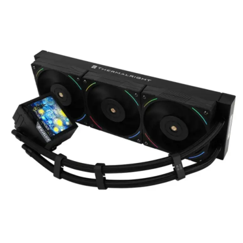 THERMALRIGHT Mjolnir Vision 360 BLACK is a high-quality liquid CPU cooler featuring powerful cooling and impressive ARGB visuals. The 360mm radiator and three 120mm ARGB fans ensure optimal thermal control and quiet operation even under high load. Thanks to its unique design, the cooler is ideal for both gamers and professional users who require stable performance and efficient cooling. Compatible with Intel and AMD platforms, it offers a wide range of use possibilities. The bulk version provides a quality product at an affordable price, without packaging.