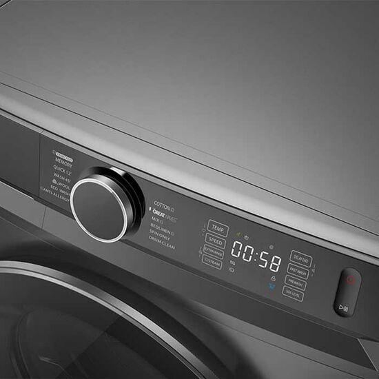 The Toshiba TW‑BK110G4UZ(SK) is a model with a capacity of 10 kg, featuring an inverter motor that ensures energy-efficient A+++ class and low noise levels. It is equipped with a Steam Wash function and an antibacterial program that helps reduce allergies. The 12 different washing modes include Eco, Quick, and Antiallergic programs. The Drum Clean function automatically cleans the stainless steel drum for maintenance. Control of settings is easily done via an LED display and electronic buttons. The maximum spinning speed is 1400 RPM, while the child-lock function ensures safe operation.