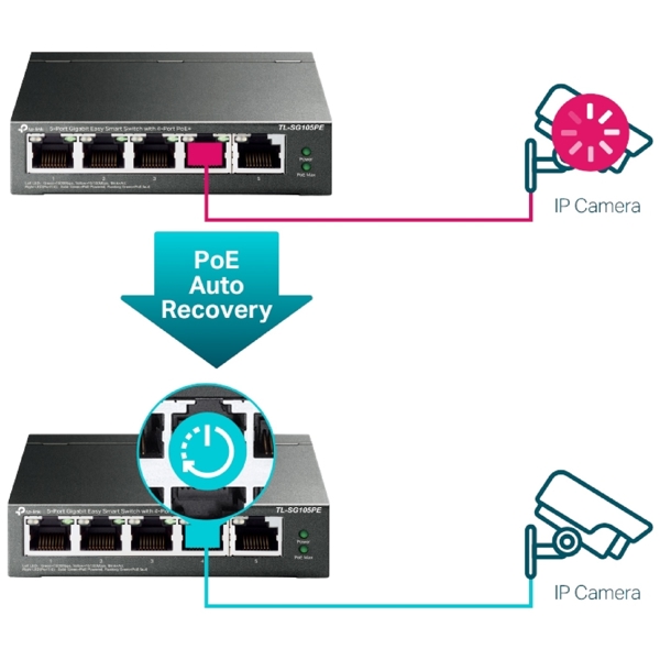 TP-Link TL-SG105PE is a 5-port Gigabit PoE+ switch that is an ideal choice for small businesses, offices, and home networks. It provides high-speed connectivity and flexible network management, which helps optimize the network and ensure efficient operation of devices. The switch is equipped with 4 PoE+ ports (IEEE 802.3af/at), which provide power supply to compatible devices such as IP cameras, VoIP phones, and access points. Each PoE+ port can supply up to 30W of power, and the total PoE budget is 65W. The TL-SG105PE also includes QoS (Quality of Service) and VLAN functions, which ensure smooth network operation and data prioritization. Plug & Play installation and a durable metal housing make it easy to use and reliable for daily use. If you are looking for a high-quality, powerful, and compact PoE+ switch, the TP-Link TL-SG105PE is your best choice!